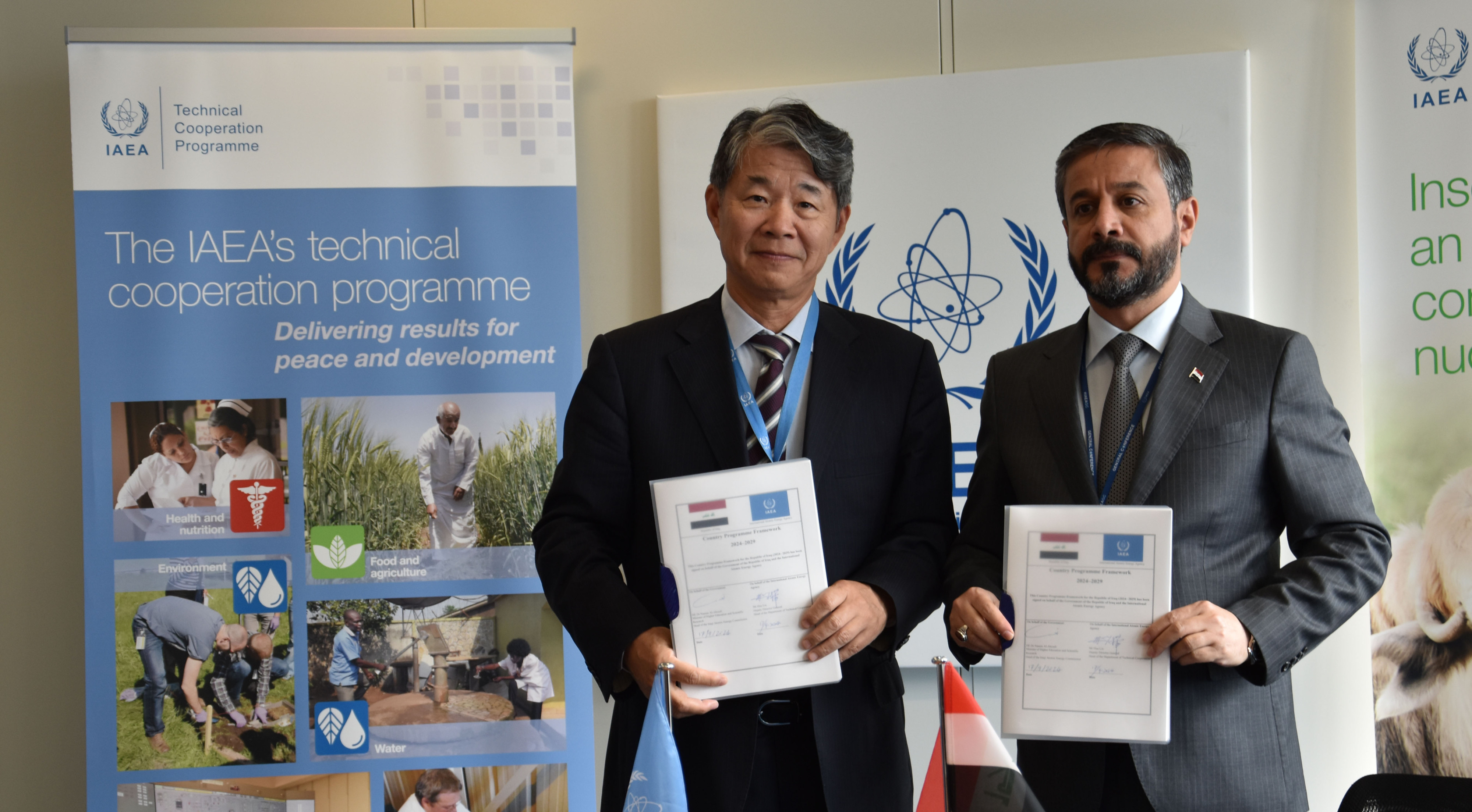 HE Mr Naeem Abed Yasir, Minister of Higher Education and Scientific Research and Head of the Iraqi Atomic Energy Commission, and Mr Hua Liu, IAEA Deputy Director General and Head of the Department of Technical Cooperation, signed Iraq’s Country Programme Framework (CPF) for the period of 2024–2029 on 17 September 2024. A CPF is the frame of reference for the medium-term planning of technical cooperation between a Member State and the IAEA and identifies priority areas where the transfer of nuclear technology and technical cooperation resources will be directed to support national development goals.