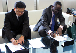 HE Khamkheuang Bounteum, Lao People's Democratic Republic Ambassador and Permanent Representative to the IAEA, and Kwaku Aning, IAEA Deputy Director General and Head of the Department of Technical Cooperation, have signed the Lao People's Democratic Republic's first Country Programme Framework (CPF) for the period of 2014 - 2018 on 13 May 2014.
