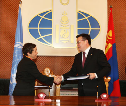 Find a copy of the UNDAF agreement on the official UN country web site of Mongolia http://www.un-mongolia.mn/web/news170311.html.