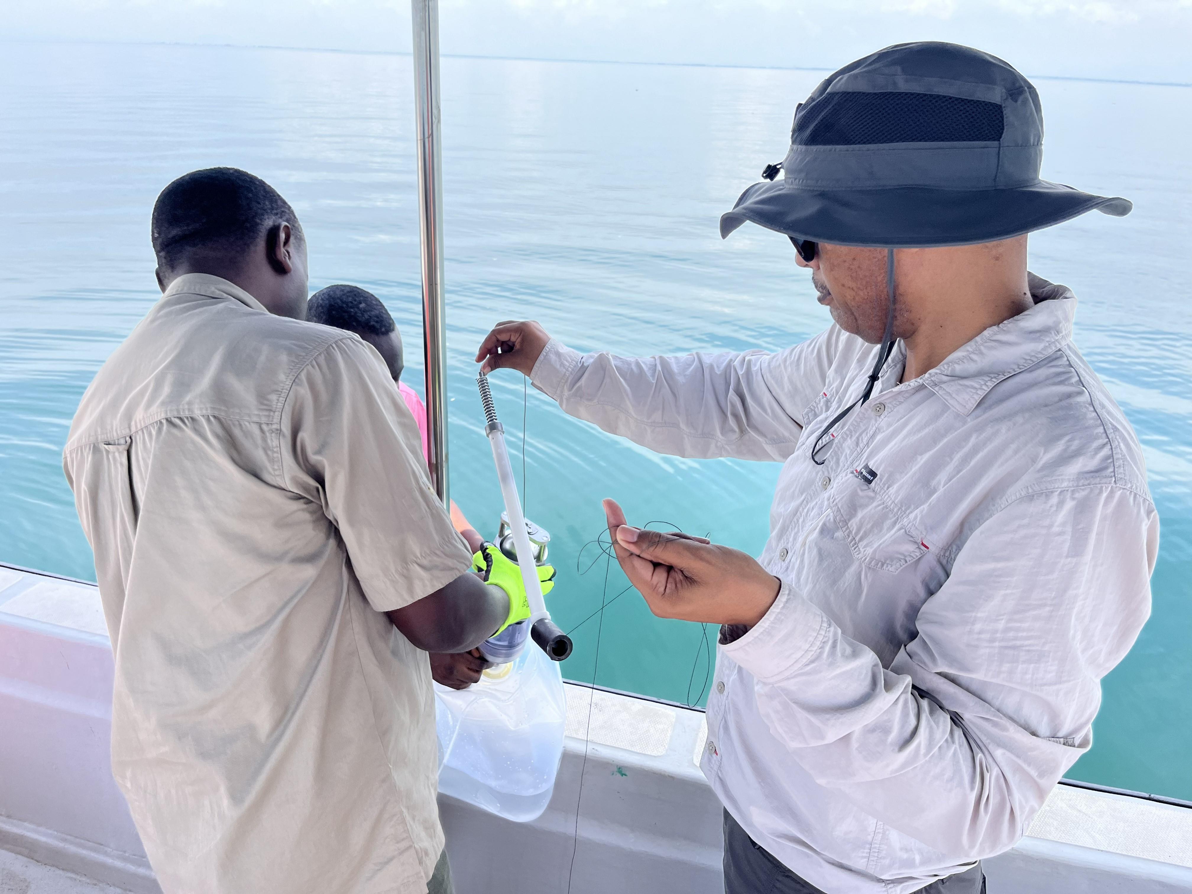 IAEA experts and scientists from the University of Burundi collect water samples from Lake Tanganyika as part of efforts to understand changes in the lake’s conditions. (Photo: IAEA)