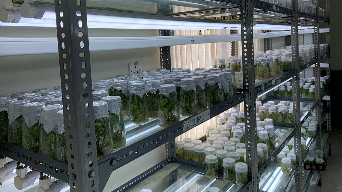 Those tolerant mutant lines have been selected for further assessment under field conditions (see What is plant mutation breeding?). Plant regeneration using tissue culture and irradiation were undertaken at the Joint FAO/IAEA Centre with the participation of Francis, who was trained on the technique at the same time. This has effectively proven that mutation induction through calibrated radiation combined with tissue culture is an effective way for improving vegetative crops like ginger. It is expected that newly improved mutant varieties of ginger could be available in three to four years, much sooner than with other breeding methods, which typically take more than double or triple that amount of time to yield new varieties.