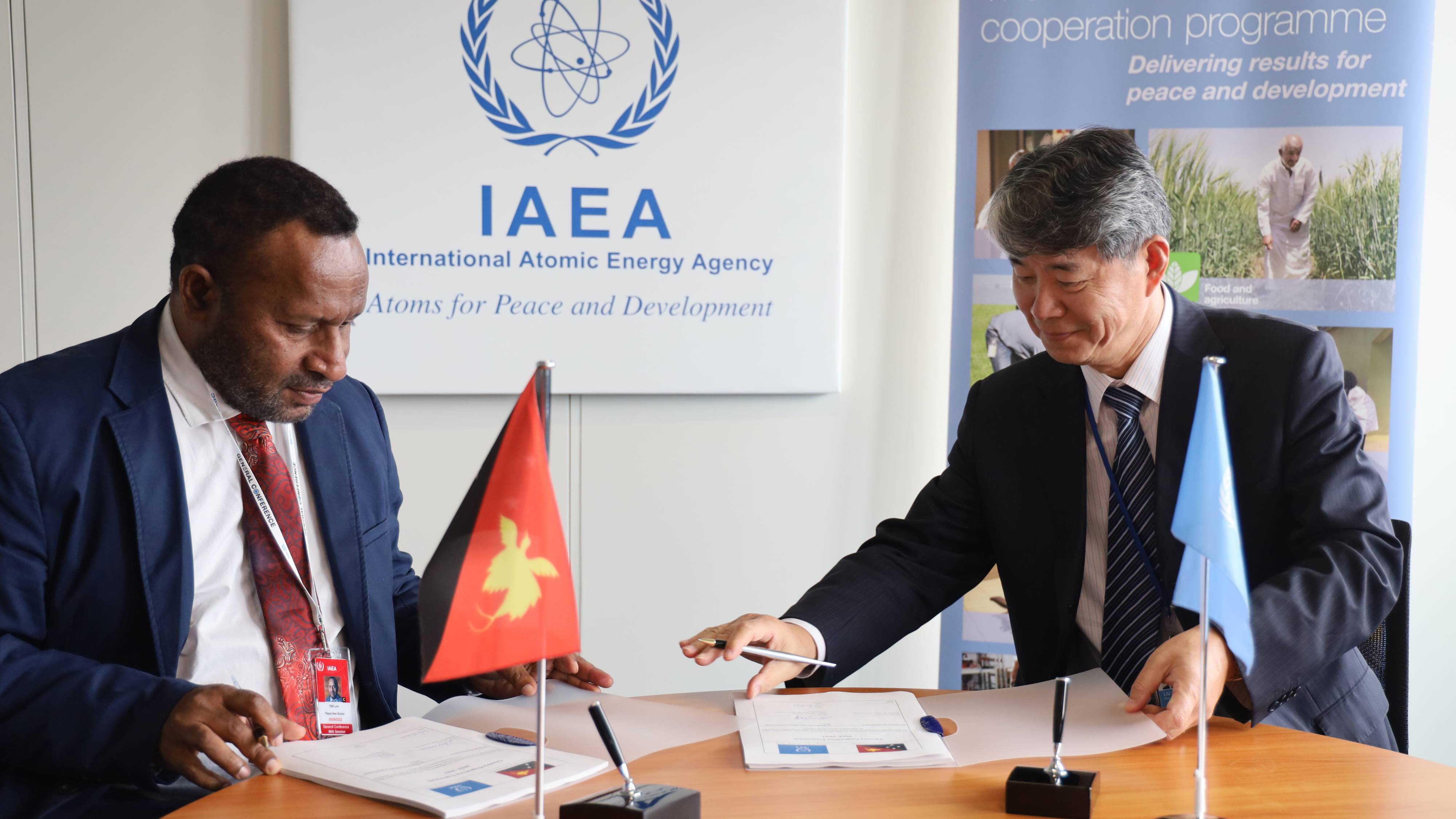 Honourable Lino Tom, Minister for Health and HIV/AIDS, and Hua Liu, IAEA Deputy Director General and Head of the Department of Technical Cooperation, signed Papua New Guinea’s Country Programme Framework (CPF) for the period of 2022–2027 on 30 September 2022. A CPF is the frame of reference for the medium-term planning of technical cooperation between a Member State and the IAEA and identifies priority areas where the transfer of nuclear technology and technical cooperation resources will be directed to support national development goals.