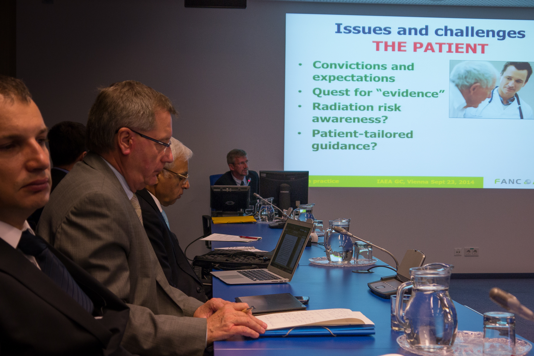 To promote its AAA approach, the IAEA Radiation Safety and Monitoring Section held an event on 23 September during the IAEA's 58th General Conference, where Jim Malone, Professor of Medical Physics at Trinity College, in Ireland, and Lodewijk Van Bladel, Senior Radiological Protection Expert at the Federal Agency for Nuclear Control in Belgium gave presentations on the history, importance and benefits of using the AAA approach to improve patient radiation protection.