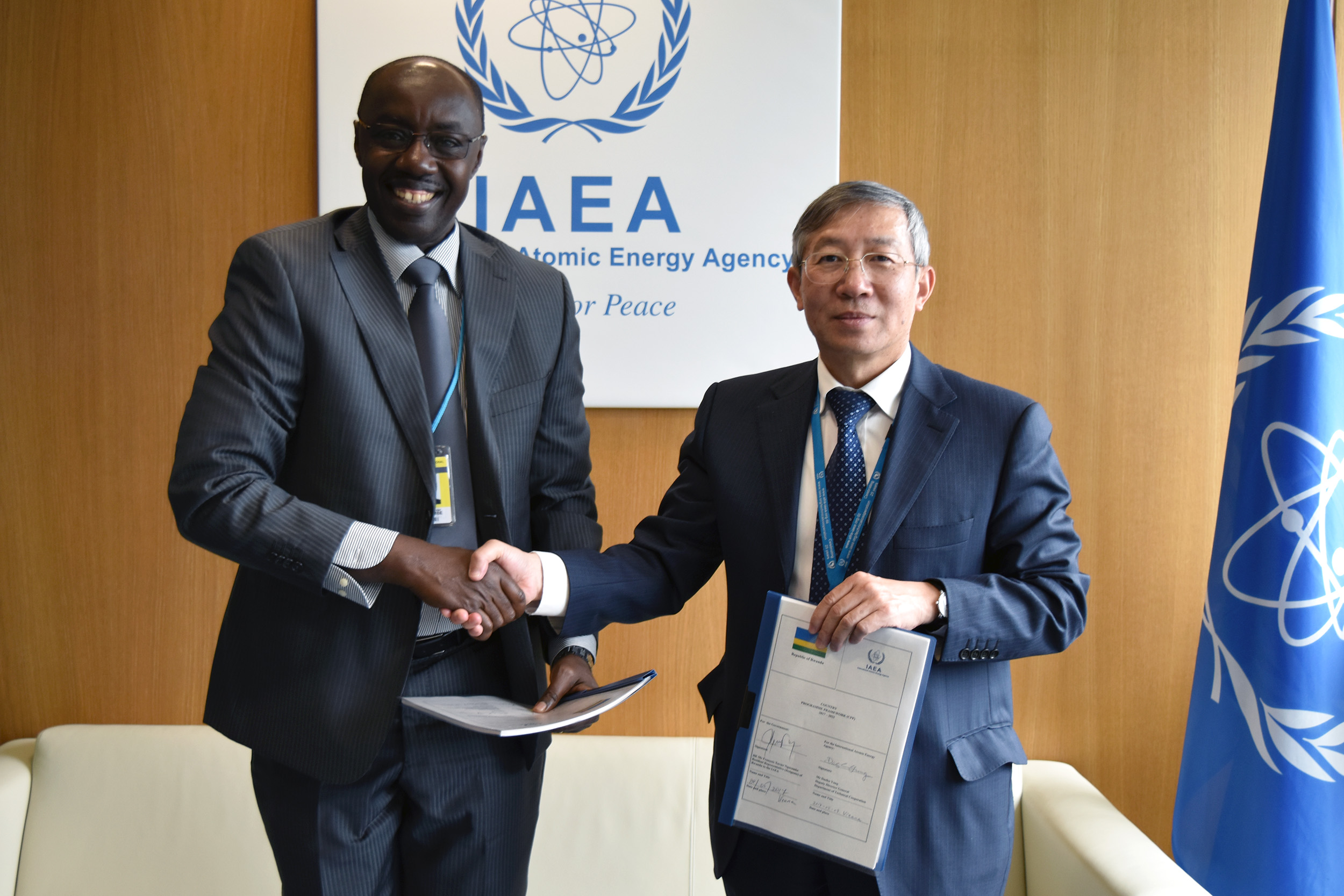 HE Dr Francois Xavier Ngarambe, Ambassador and Permanent Representative of the Republic of Rwanda to the United Nations Offices in Geneva and Vienna, and Mr Dazhu Yang, IAEA Deputy Director General and Head of the Department of Technical Cooperation, have signed Rwanda’s Country Programme Framework (CPF) for the period of 2017 - 2021 on the 9th of May 2017. A CPF is the frame of reference for the medium-term planning of technical cooperation between a Member State and the IAEA and identifies priority areas where the transfer of nuclear technology and technical cooperation resources will be directed to support national development goals.