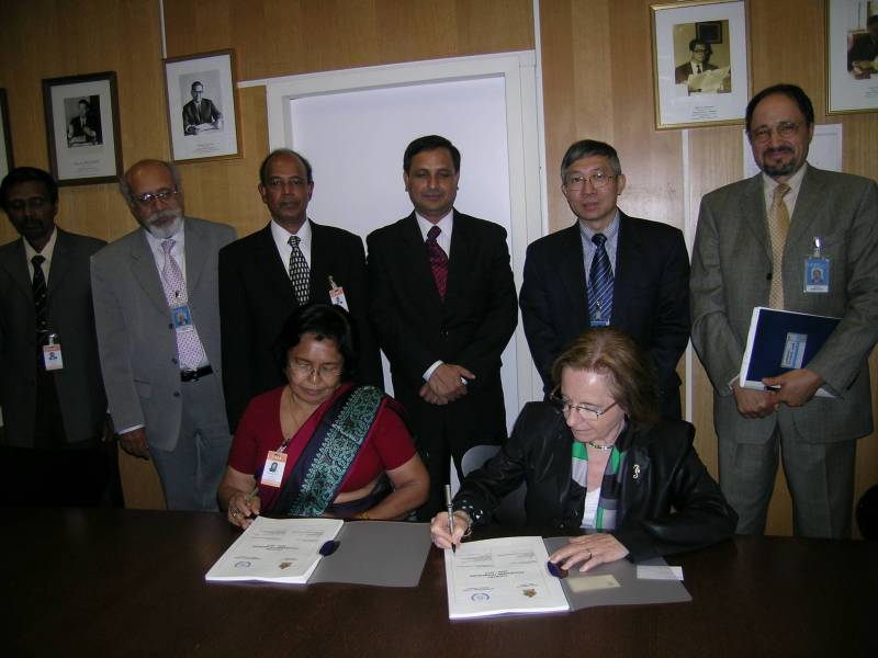 The Country Programme Framework for Sri Lanka for the period 2009-2013 was signed by M.B.A. Ebanayake, Secretary of the Ministry of Science and Technology, Government of Sri Lanka, and Ana María Cetto, Deputy Director General and Head of the Department of Technical Cooperation, on 29 October 2009, at the IAEA Headquarters. H.E. Musthafa Mohamed Jaffeer, Ambassador, and the Resident Representative of Sri Lanka to the IAEA, was also present on this occasion.