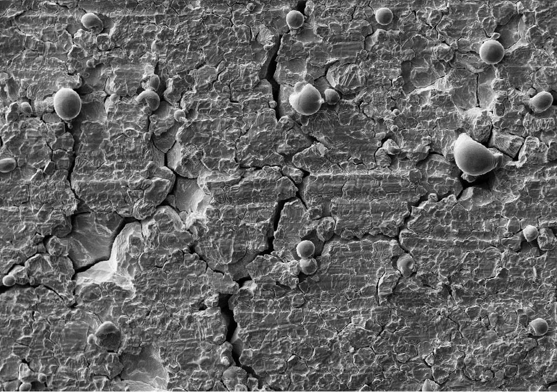 Damage caused to a pure tungsten surface by exposure to reactor-relevant heat loads. (Photo:&nbsp;FZJ)