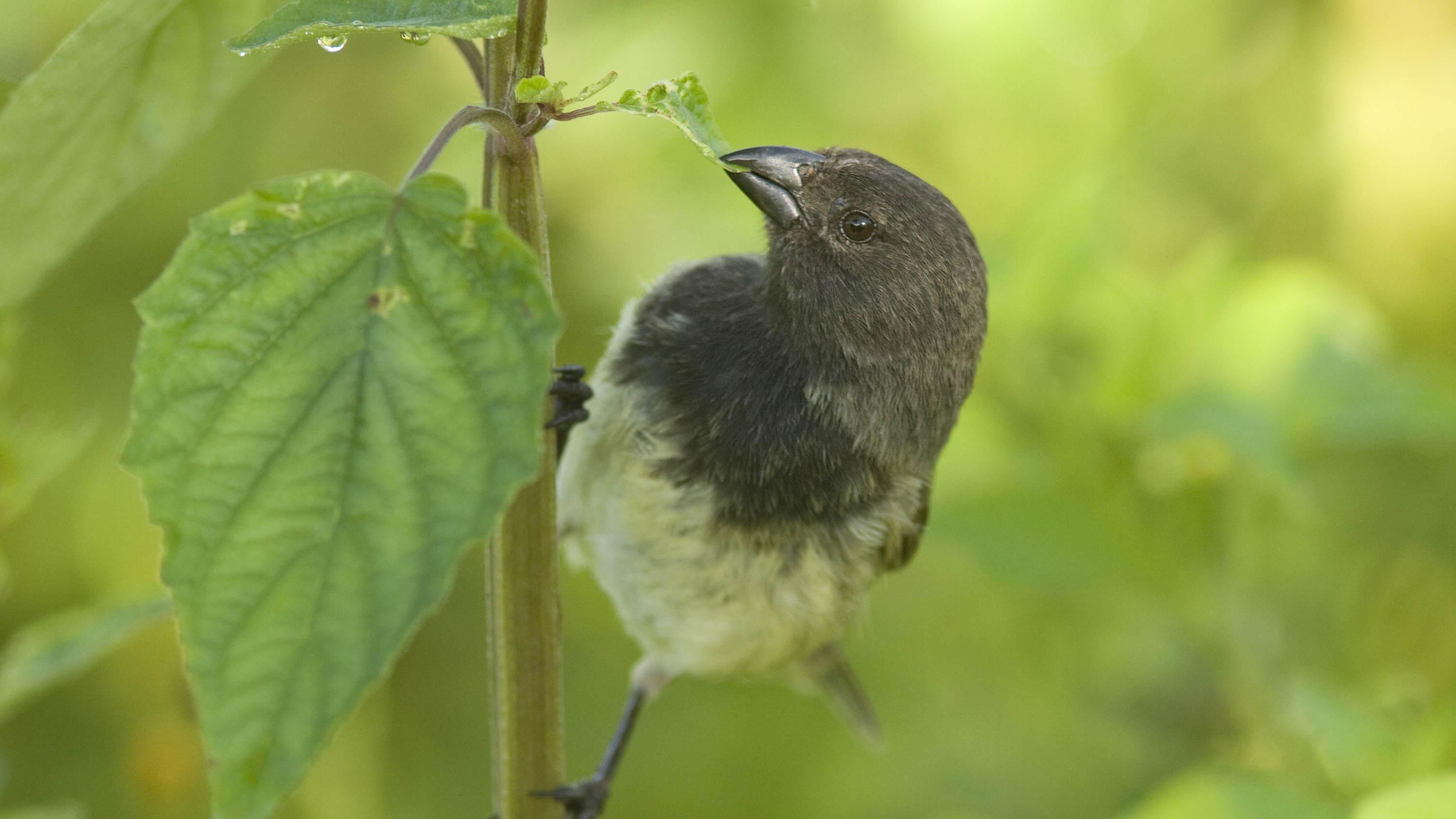 A small tree finch, a species of bird in the Darwin's finch group threatened by the larvae of the invasive parasitic fly, Philornis downsi.&nbsp;(Photo:&nbsp;Michael Dvorak)