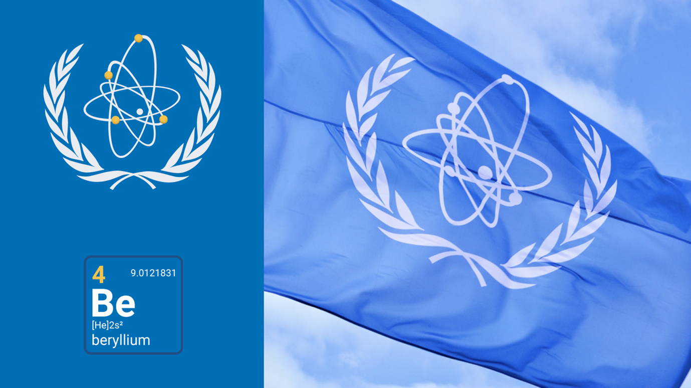 The atom at the centre of the IAEA’s logo has four electrons – meaning it is Beryllium if it is neutral and not ionized. (Infographic: M. Magnaye)