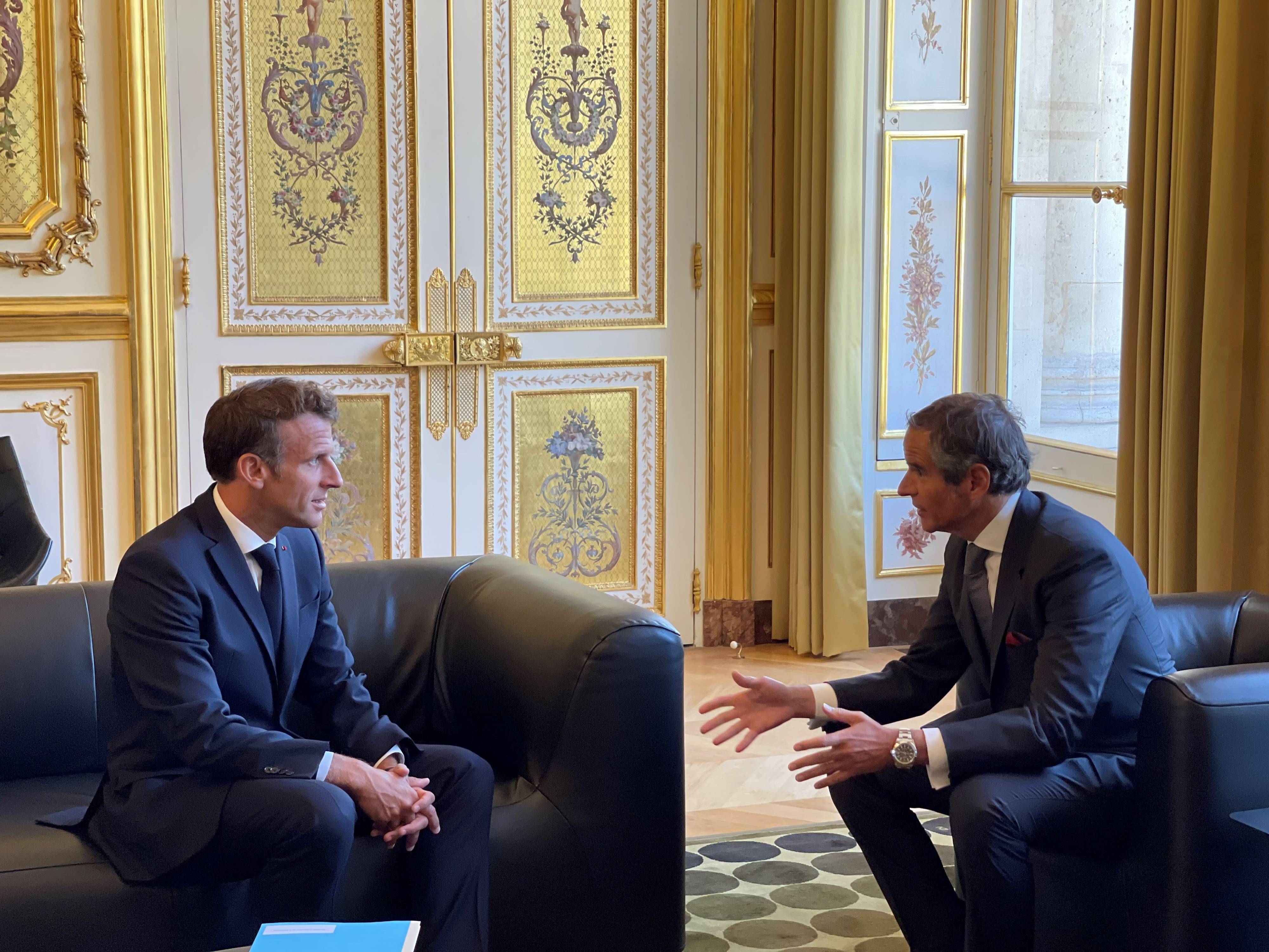 IAEA Director General Rafael Mariano Grossi met with President Emmanuel Macron yesterday in Paris, in an important step to the IAEA’s imminent mission to Ukraine’s Zaporizhzhya Nuclear Power Plant. President Macron, who reiterated his support of the IAEA’s activities, has played key role in facilitating the mission. That mission would assess the physical damage to the facilities, determine whether the main and backup safety and security systems are functional and evaluate the staff’s working conditions, in addition to performing urgent safeguards activities on the site. The plant, Europe’s largest, has been occupied by Russian forces since early March but is operated by Ukrainian staff. Last week, Russian President Vladimir Putin agreed to an IAEA mission in talks with President Macron, while Ukrainian President Volodymyr Zelenskyy agreed the parameters with the UN Secretary General Antonio Guterres and Turkish President Recep Tayyip Erdogan.