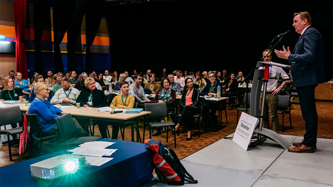 Gerben Dijksterhuis, Mayor of Borsele, addresses residents who developed a list of conditions for community acceptance of the construction of new nuclear power plants in the municipality. (Photo: Municipality of Borsele, Kingdom of the Netherlands)