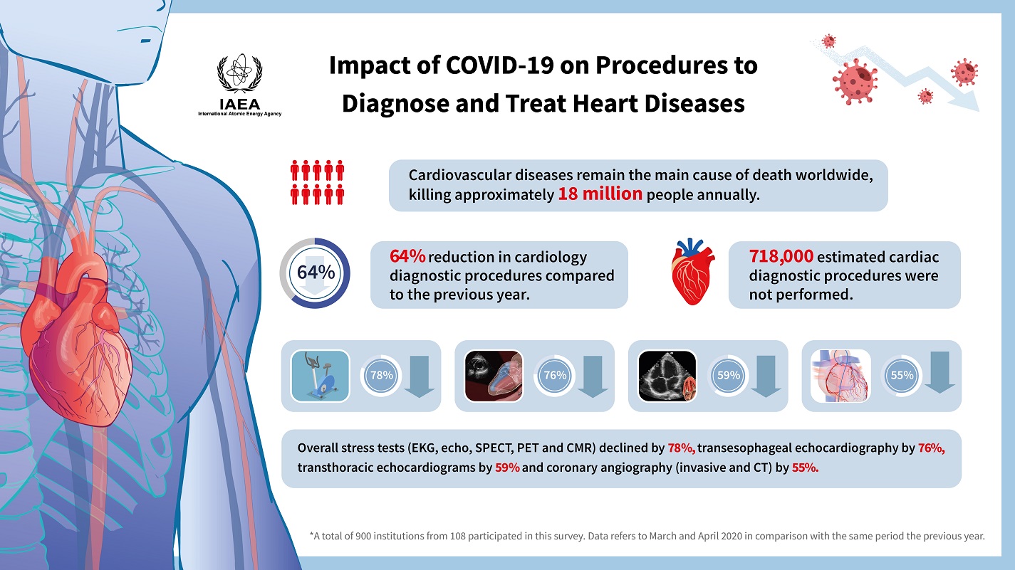 Procedures to diagnose and treat heart diseases decreased by nearly two-thirds across the world during the early months of the pandemic as countries and patients prioritized the fight against COVID-19, an International Atomic Energy Agency (IAEA) survey shows. The findings raise concern for patients at risk or who live with such conditions, as cardiovascular diseases remain the main cause of death worldwide, killing approximately 18 million people annually.