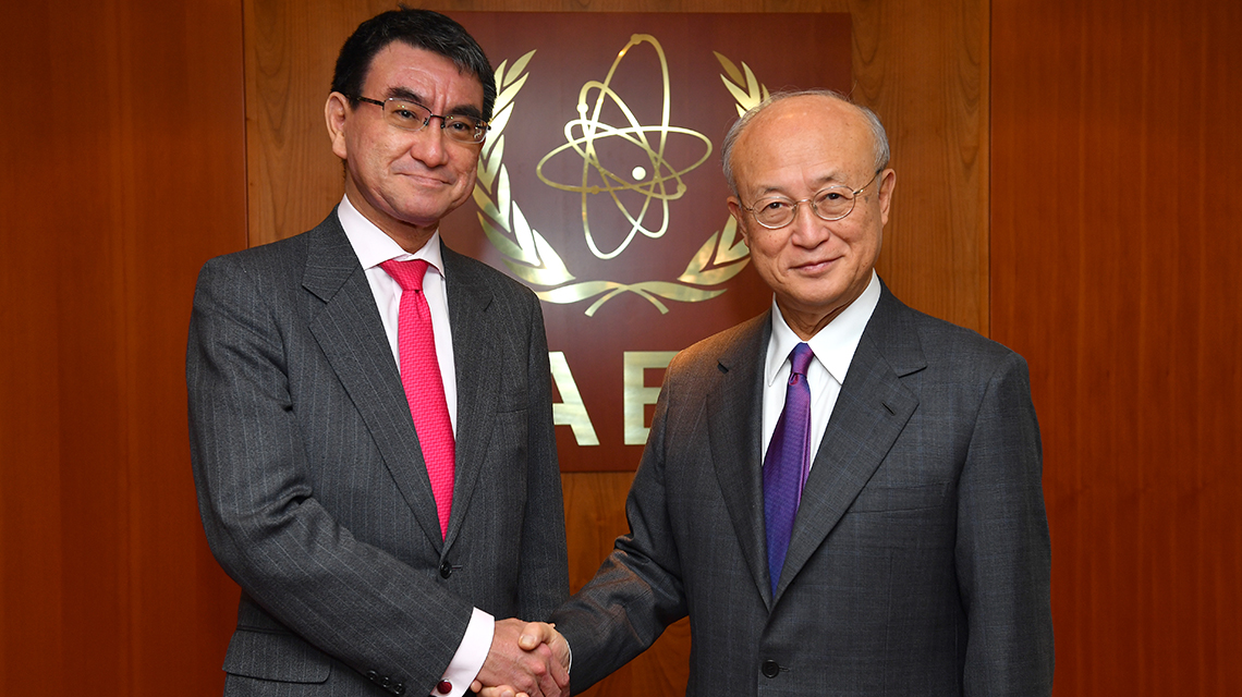 IAEA Director General Yukiya Amano and Japanese Foreign Minister Taro Kono presided over the signing ceremony at the Agency’s headquarters in Vienna. Practical Arrangements outlining the planned cooperation were signed by IAEA Deputy Director General Juan Carlos Lentijo, head of the Department of Nuclear Safety and Security, and H.E. Mitsuru Kitano, Japan’s Ambassador to the International Organizations in Vienna.