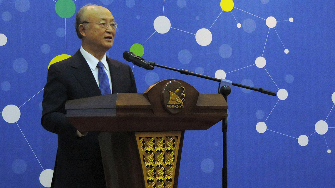 IAEA Director General Yukiya Amano delivering his statement at the Ministry of Research, Technology and Higher Education in Jakarta, Indonesia. (Photo: Bureau for Legal, Public Relations and Cooperation, Badan Tenaga Nuklir Nasional (BATAN))