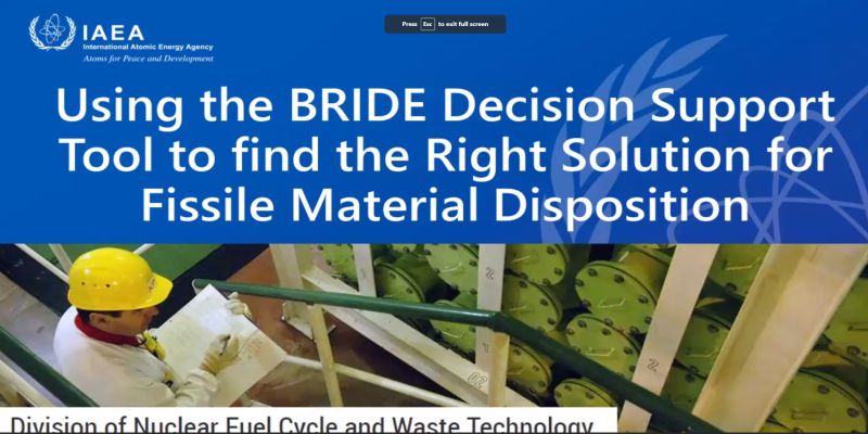 Nuclear Back End Webinar Series 4.5 - Using the BRIDE Decision Support Tool to find the Right Solution for Fissile Material Disposition