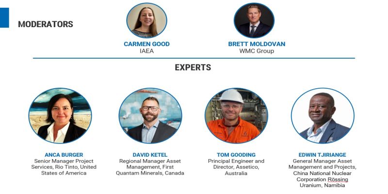 This is the fourth webinar in an IAEA Webinar Series on the Front End of the Nuclear Fuel Cycle Uranium Production Cycle topics. The webinar focuses on the release of new publication IAEA-TECDOC-2084 Life Cycle Asset Management of Uranium Mining and Processing Facilities.Safe and sustainable uranium production requires comprehensive asset management of uranium mines and processing facilities. This new IAEA publication provides guidance on management strategies and maintenance techniques for ageing uranium production cycle facilities and insights for new builds.?During this webinar industry professionals will share their knowledge and experiences on life cycle asset management.Introductory Remarks:Olena Mykolaichuk – Director, Division of Nuclear Fuel Cycle and Waste Technology, IAEAModerator:Carmen Good – Uranium Production Specialist, IAEABrett Moldovan – WMC Group, The Netherlands (former IAEA staff member)Speakers:Anca Burger – Rio Tinto, United States of AmericaTom Gooding – Assetico Pty Ltd, AustraliaDavid Ketel – First Quantam Minerals, CanadaEdwin Tjiriange – China National Nuclear Corporation R?ssing Uranium, Namibia