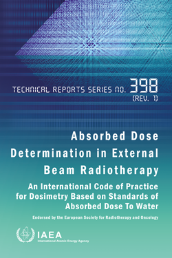 Absorbed Dose Determination, External Beam Radiotherapy, International Code of Practice, Dosimetry Based on Standards of Absorbed Dose to Water, IAEA TRS-398, Systematic and Internationally Unified Approach, Calibration of Ionization Chambers, Detectors, Key Data, Radiation Dosimetry, International Commission on Radiation Units and Measurements, ICRU, Radiotherapy Technologies, Beam Qualities, Framework, The International Measurement System, Formalism, Implementation, Dosimetry Equipment, Gamma Ray Beams, Beam Quality Specification, High Energy Photon Beams, Cross-Calibration, Estimated Uncertainty, Non-Standard Electron Beams, Plastic Phantoms, Low Energy Kilovoltage X Ray Beams, Worksheet, Medium Energy Kilovoltage X Ray Beams, Proton Beams, Light Ion Beams, Review