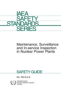 This Safety Guide provides recommendations and guidance for effective maintenance, surveillance and in-service inspection to ensure that the levels of reliability and availability of all plant structures, systems and components meet the assumptions and intent of the design. It supplements Section 6 of Safety Standards Series No. NS-R-2, Safety of Nuclear Power Plants: Operation.