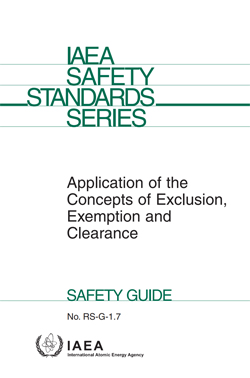 This Safety Guide provides guidance on the application of the concepts of exclusion, exemption and clearance as established in the International Basic Safety Standards for Protection against Ionizing Radiation and for the Safety of Radiation Sources. The Safety Guide includes specific values for activity concentrations for both radionuclides of natural origin and those of artificial origin that may be used for bulk amounts of material for the purposes of applying the concepts of exclusion and exemption.