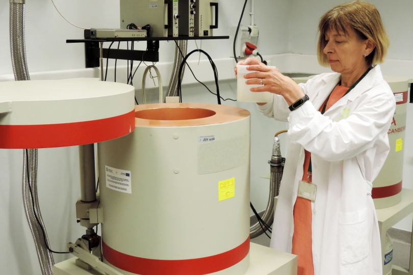 Специализированные организации технической поддержки оказывают услуги по калибровке и поверке измерительных приборов для замера уровня облучения людей и рабочих мест. Регулирующие органы и отраслевые предприятия, такие как угольные шахты, могут обращаться в эти учреждения за экспертными рекомендациями и услугами для обеспечения радиационной безопасности. На этой фотографии специалист из Польши готовит для анализа образец, отобранный на рабочем месте.