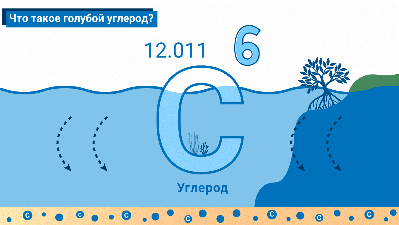 Голубой углерод — это органический углерод, захватываемый и аккумулируемый океаном в растительных прибрежных экосистемах, таких как мангровые леса, приливные болота или поля морских водорослей. В таких экосистемах — резервуарах голубого углерода органический углерод накапливается и сохраняется в донных отложениях. Эти океанические среды обитания расположены вдоль побережий, встречаются на всех континентах, кроме Антарктиды, и занимают площадь около 50 миллионов гектаров — по размеру почти вдвое превышающую территорию Великобритании.