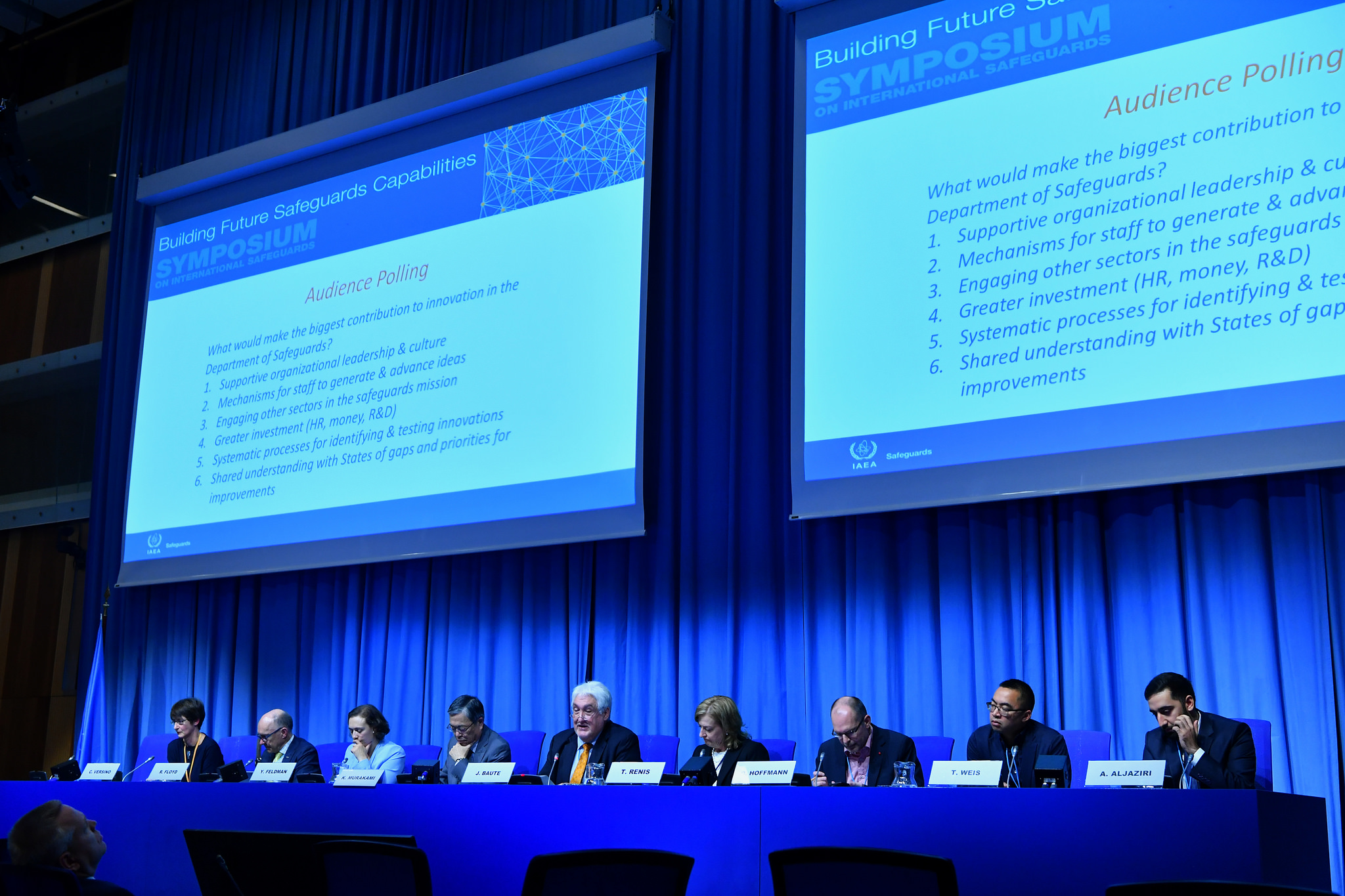 Участники обсудили возможные пути решения возникающих проблем, связанных с осуществлением гарантий, вопросы эффективного использования технологических усовершенствований при применении гарантий, вопросы разработки гарантий для новых и выведенных из эксплуатации ядерных установок и перспективы осуществления гарантий в будущем.