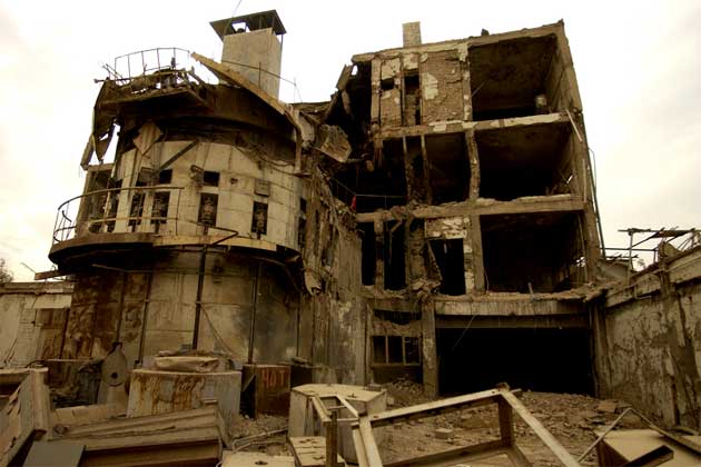 The remains of a nuclear research reactor at Tuwaitha. Like many former nuclear facilities in Iraq it needs decommissioning. Radioactive residues have left the area contaminated. It was severely damaged during air strikes in the 2003 war.